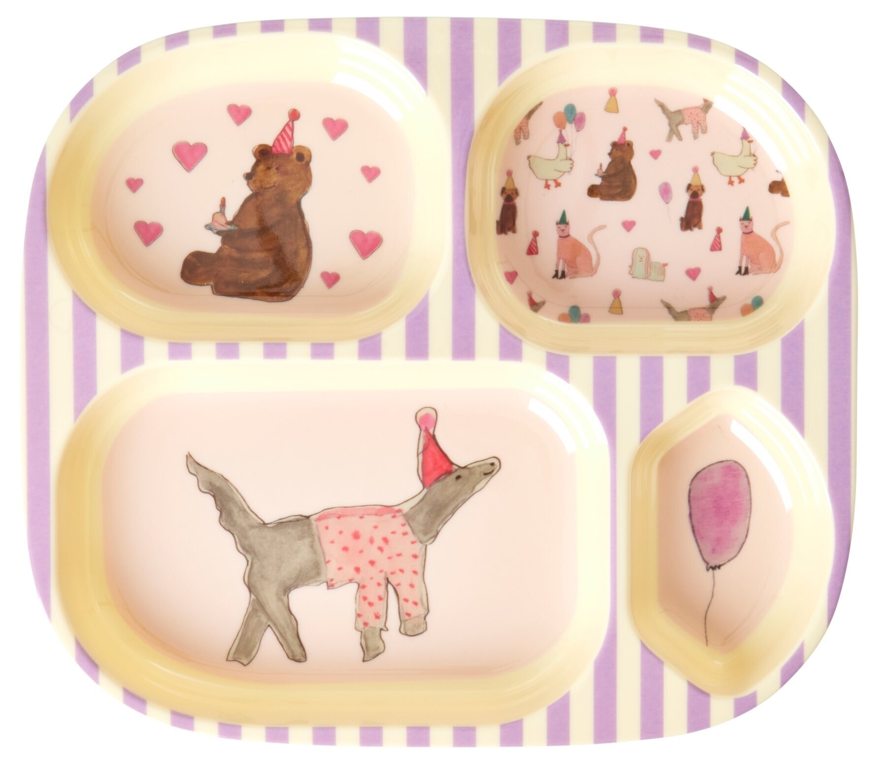 Barntallrik med 4 fack från Rice som passar bra till barnens måltider såsom lunch, desserter, smörgåsar mm.