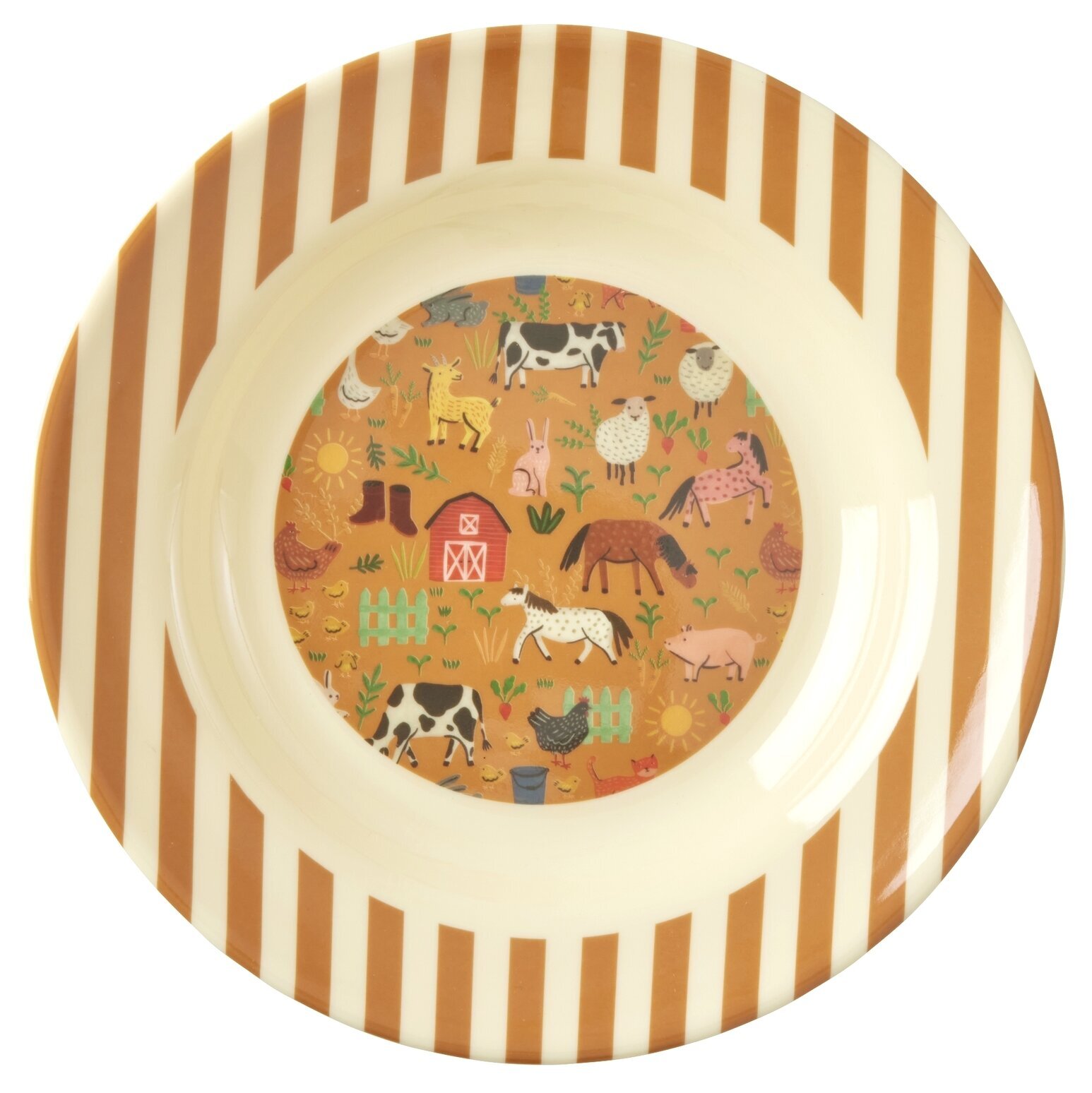 Djup barntallrik i melamin från Rice som passar bra till barnens måltider såsom lunch, desserter, smörgåsar mm. Tallriken är i 100% melamin så den är en given favorit i hållbarhet. Inget glaskross eller liknande om den skulle råka åka i golvet.