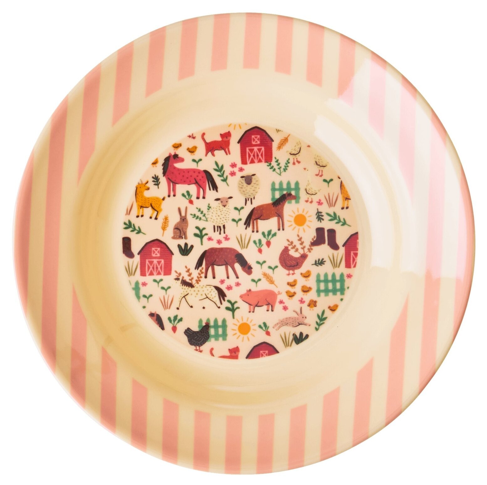 Djup barntallrik i melamin från Rice som passar bra till barnens måltider såsom lunch, desserter, smörgåsar mm. Tallriken är i 100% melamin så den är en given favorit i hållbarhet. Inget glaskross eller liknande om den skulle råka åka i golvet.