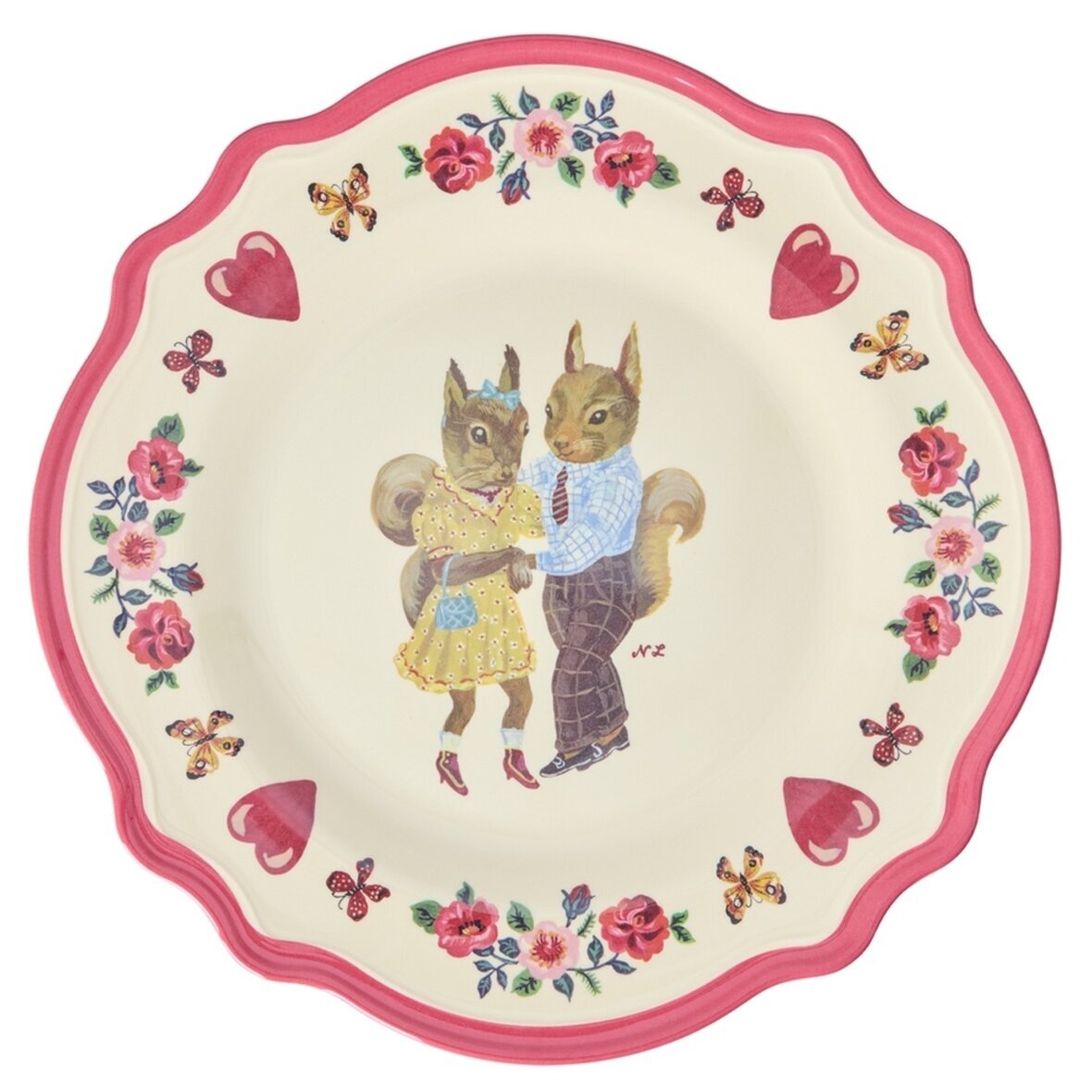 Denna unika tallrik från Rice i samarbete med Nathalie Lété kombinerar lekfull konst med praktisk funktion. Med söta ekorrar i färgglada kläder, omgivna av blommor & fjärilar, blir den en riktig favorit på bordet.