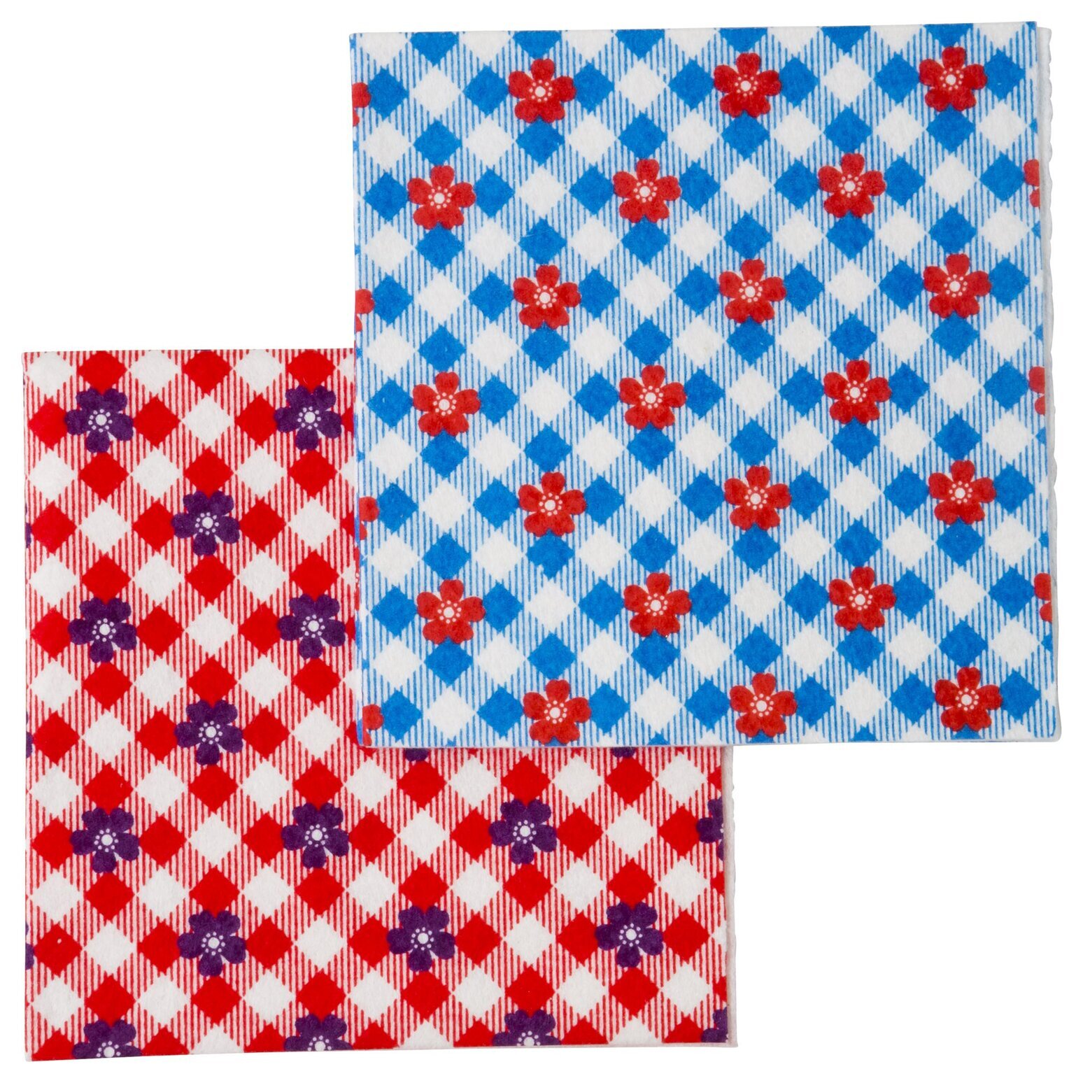 De två trasorna ligger något överlappande på bilden, vilket ger ett tredimensionellt intryck och visar hur de båda mönstren samverkar på ett harmoniskt sätt. Den tydliga avbildningen gör det lätt att föreställa sig dessa produkter i hemmamiljö, där de skulle vara både funktionella och dekorativa.