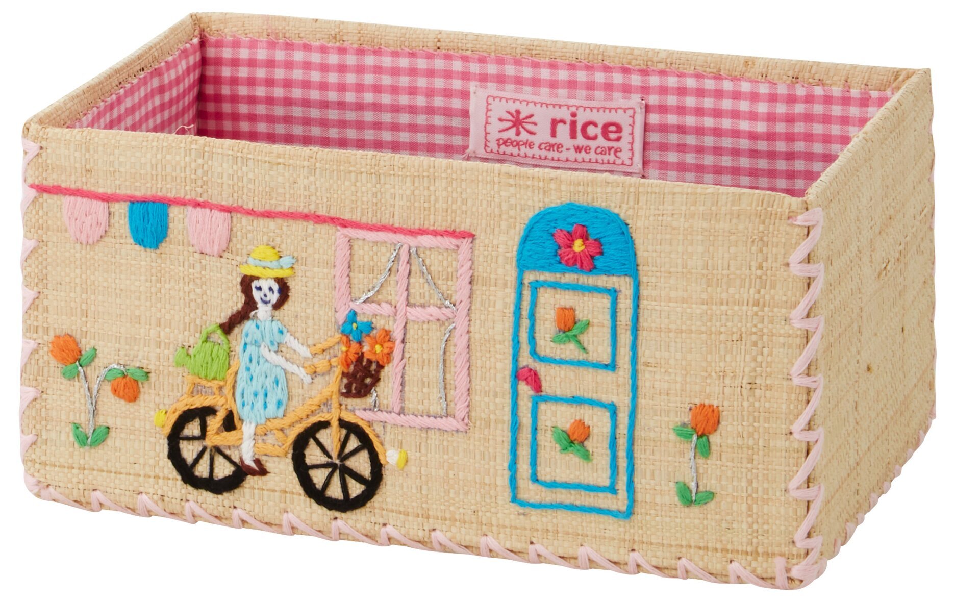 Härligt fin handgjord förvaringskorg i bast med en rektangulär form. Korgen har motiv av ett hus & kan med fördel kombineras med ytterliggare 2 stycken förvaringskorgar från danska Rice. Användbar till leksaker, pysselgrejer, gosedjur & annat smått & gott.