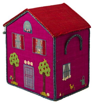 Vid husets hörn finns detaljer som små djur och blomster, vilket verkligen talar till den fantasifulla och lekfulla stilen som varumärket Rice ofta är känt för. Dessa element placerar produkten som både ett praktiskt och dekorativt inslag i ett barns rum eller vilket rum som helst där man önskar en stänk av livlig färg och kreativitet.
