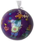 Den lila basfärgen på julgranskulan från Rice utgör en kontrast till de ljusa och färgglada motiven som pryder den, vilket gör att varje detalj framträder tydligt. Vid toppen av kulan finns ett vitt band som gör det enkelt att hänga upp den i julgranen eller på andra dekorativa sätt för att lysa upp hemmet under julperiodens firande.