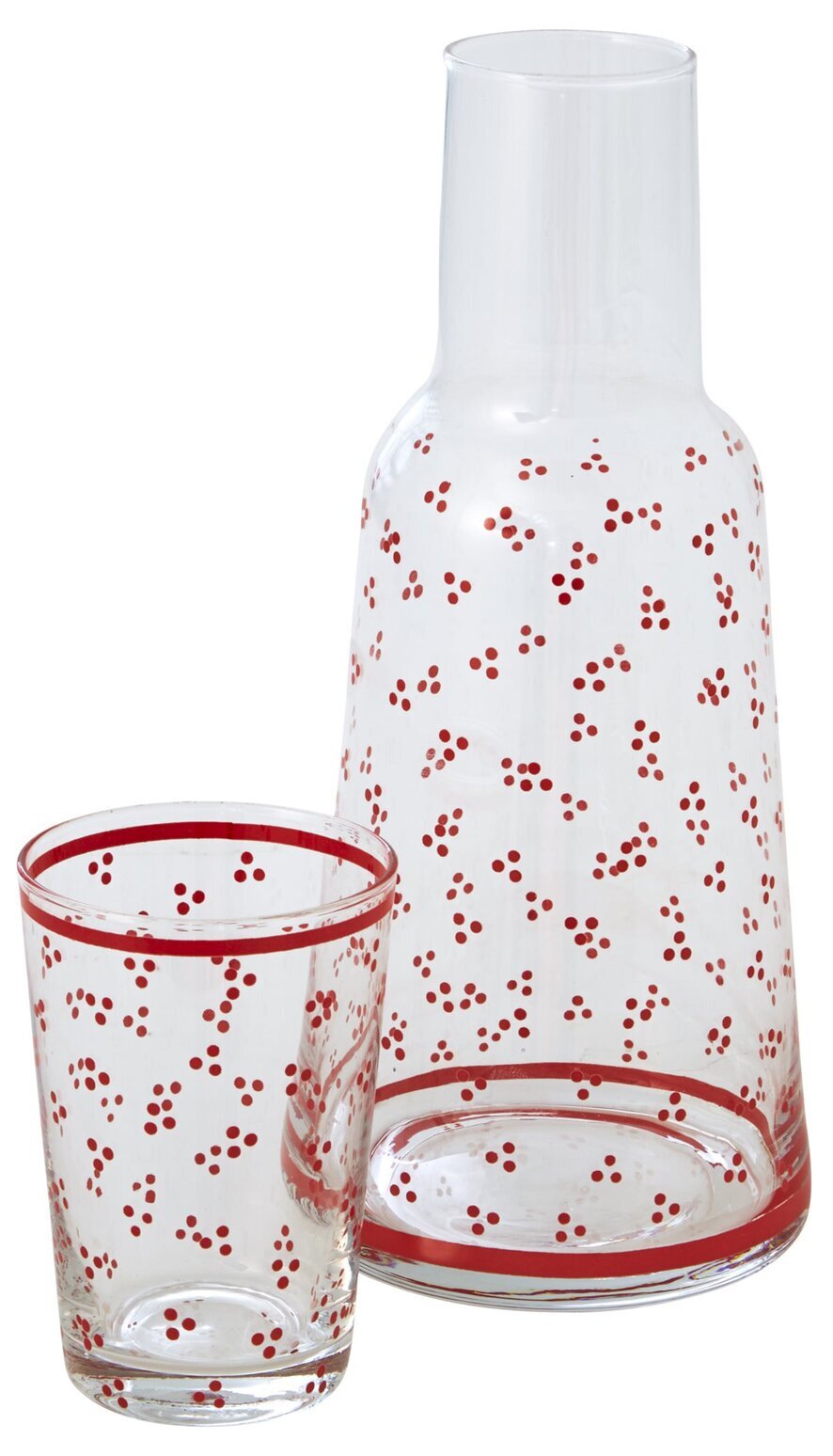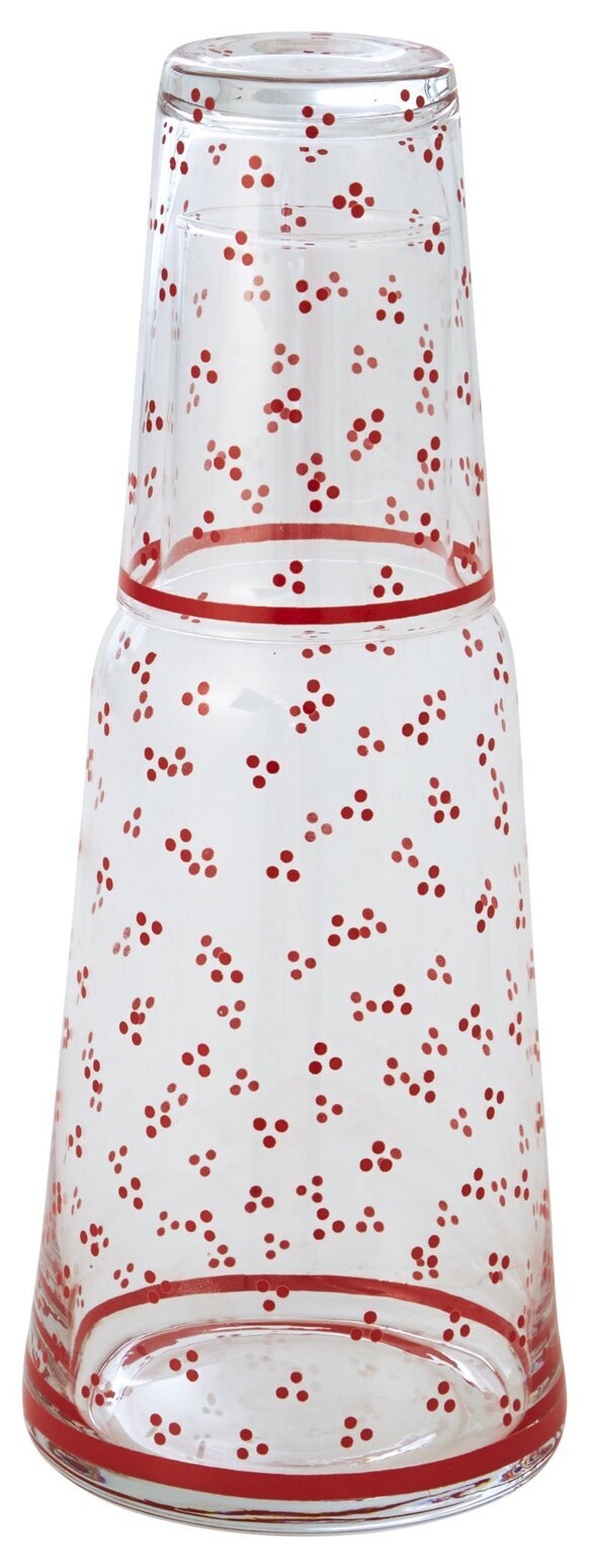 Glaskaraff med ett dricksglas. Smidigt, fräscht och stilfullt då glaset passar på karaffen. Läs mer