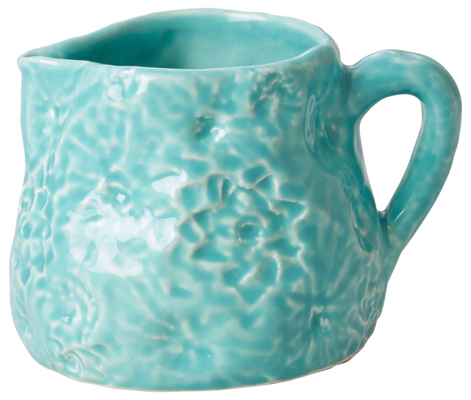 Vacker mjölkkanna i keramik med upphöjda blommor. Även fin som vas. Mått: 10 x Ø 15 cm. Läs mer
