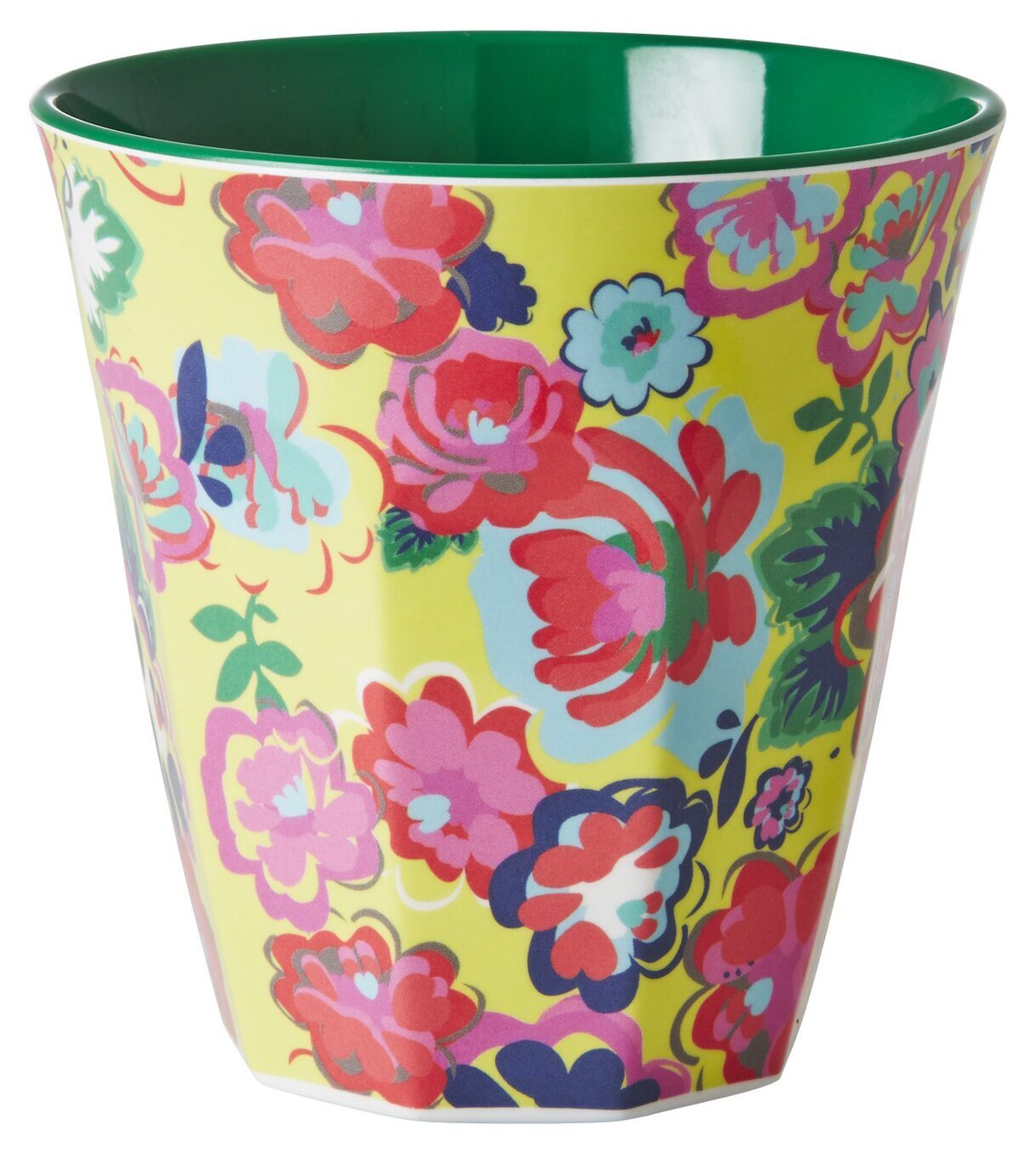 Gul Melaminmugg med rosor. Muggarna finns i flera färger och mönster som är fina att kombinera tillsammans. Läs mer