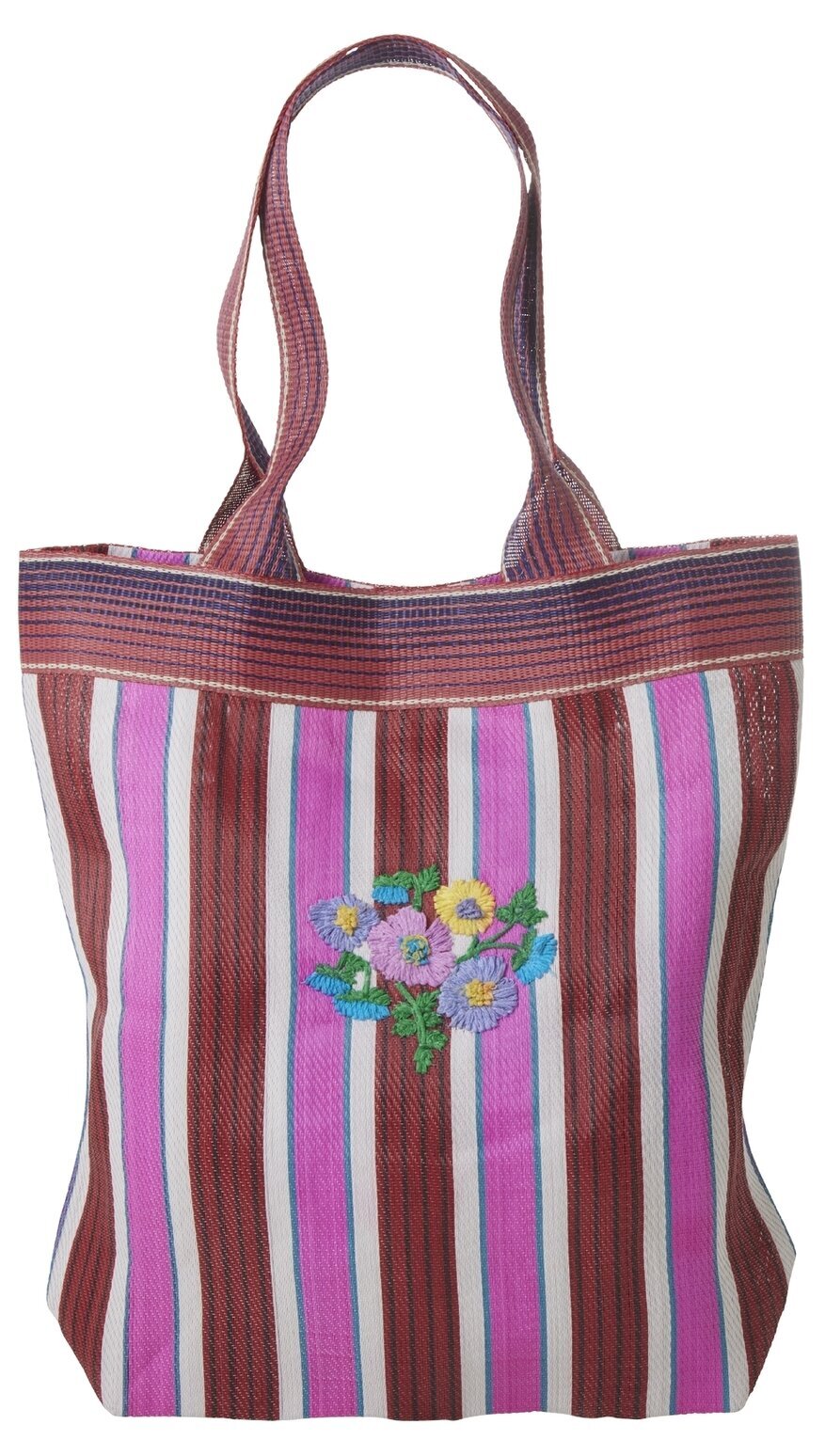 Färgglad shoppingväska med broderade blommor, tillverkad av återvunnen plast. Från Rice. Läs mer