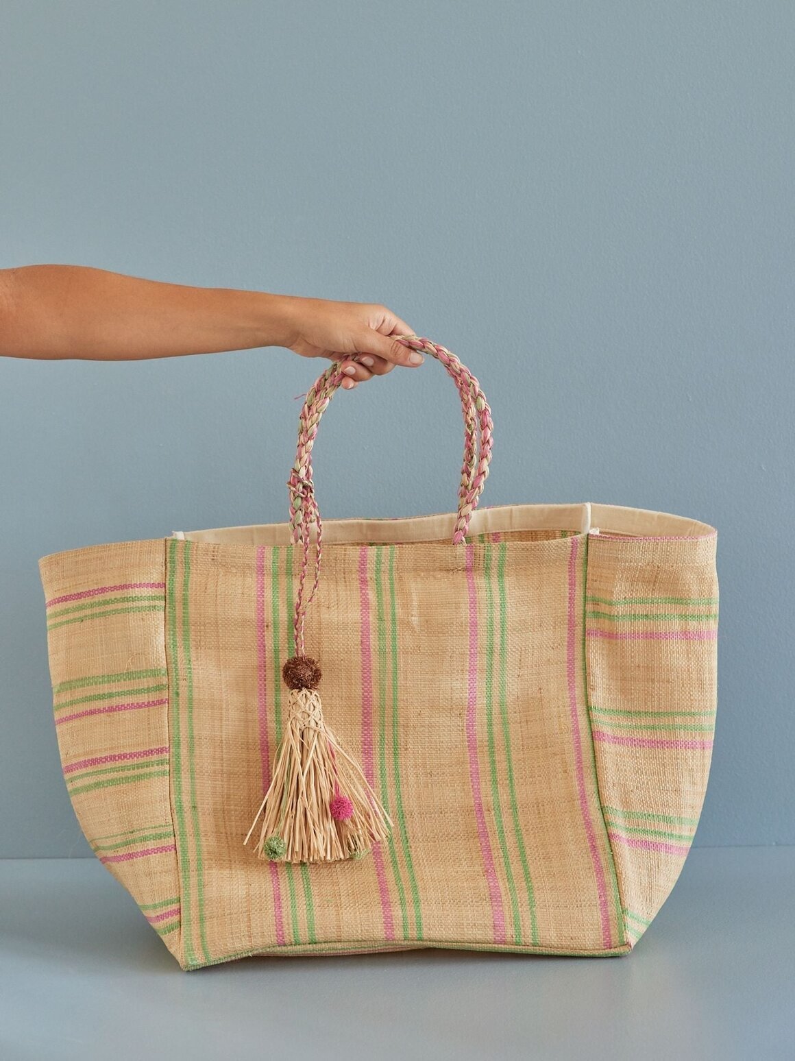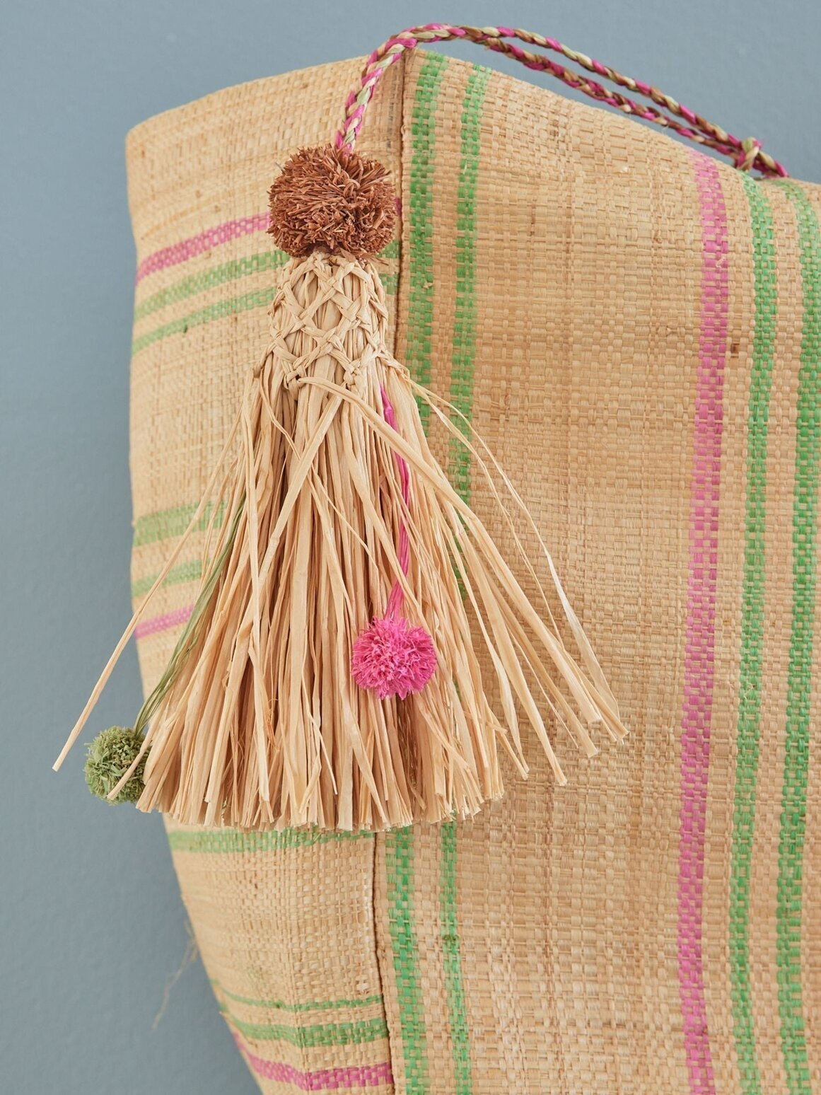 Stor väska tillverkad i raffia med tassel, användbar som både weekendväska, strandväska & shoppingväska. En rymlig väska med vackra färger & fina detaljer.