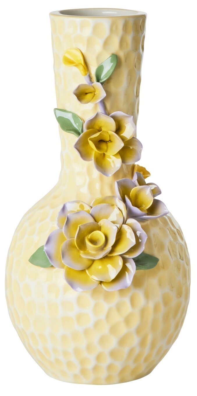Keramikvas i en fin gul nyans med vackra dekorativa blomdetaljer, från Rice. Läs mer
