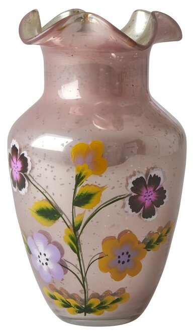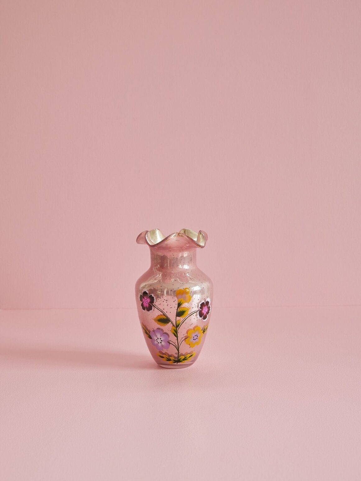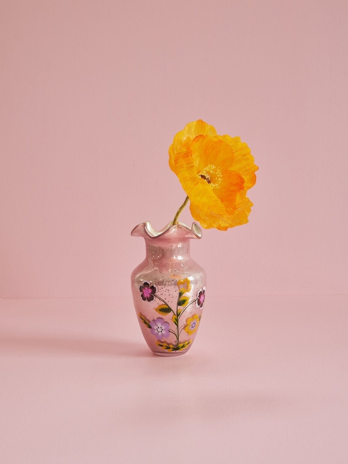 Glasvas med handmålade blommor, en fin detalj i hemmet tillsammans med vackra blommor. Från Rice.