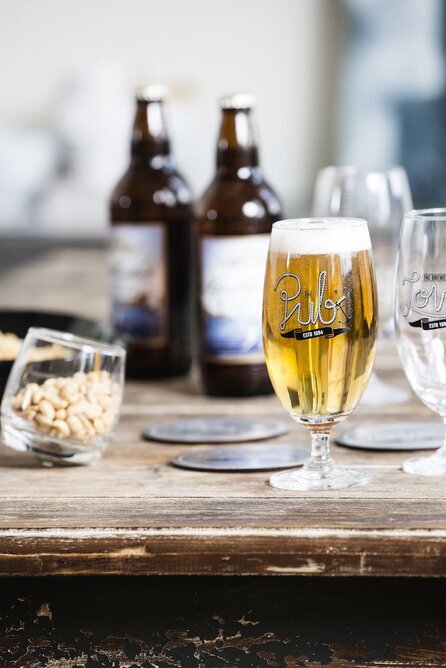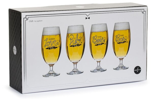 Bar Ölglas på fot, 4-pack, med texterna The Pub, The Finest Beer, The Best Bar samt The Brewery Of Love.