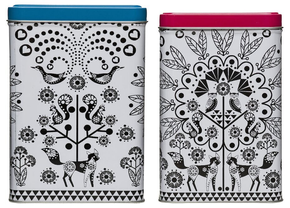 Plåtburkar i 2-pack med ett fantastiskt detaljerat mönster från Sagaform. Passar bra till kaffe, te eller som förvaring till flingor, och gryn mm. Design av Katarina Hjalmarsson