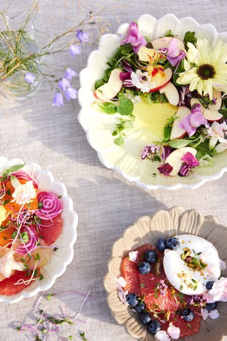 Vackert djupt fat inspirerad av den vackra tusenskönan, en fin detalj som serveringsfat på det dukade bordet. Läs mer