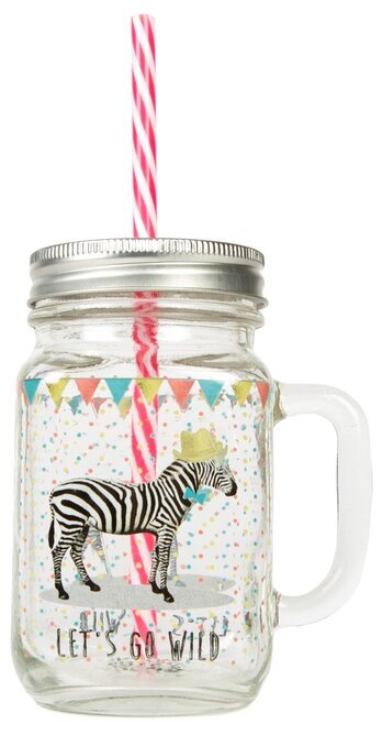 Dricksglas med lock samt medföljande sugrör. Festligt till kalas eller att ta med ut på picknick. Mått:13 x 11 x 8 cm.