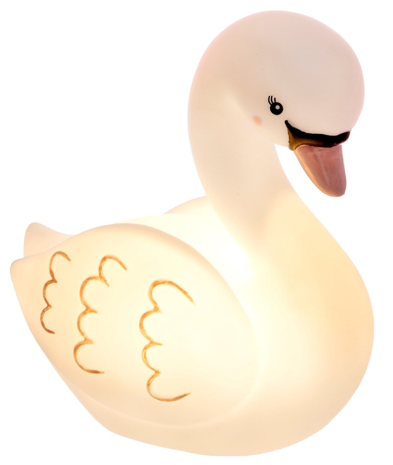 Söt nattlampa med utseende utav en vacker svan, lampan stängs automatiskt av efter 15 minuter. Kräver 3 x LR44 som medföljer.