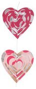 De båda hjärtana hänger vertikalt sammanlänkade med en tunn, nästan osynlig tråd, vilket ger intrycket av att de svävar i luften. Denna hängande design gör det enkelt att placera dekorationen i olika delar av hemmet, från ett vardagsrum till en mysig sovalkov eller ett barnrum.