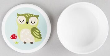 Liten rund matbox med ett ljuvligt motiv av en söt uggla. Matboxen är nätt i modellen & smidig att ta med i ryggsäcken till fruktstunden, picknicken eller i skötväskan. Perfekt att förvara sylt, ketchup, snacks eller frukt i. Kan även användas som förvaringsbox till pärlor & andra små pysselsaker. Matboxen är godkänd för livsmedel & fri från BPA. Kan diskas i maskin.