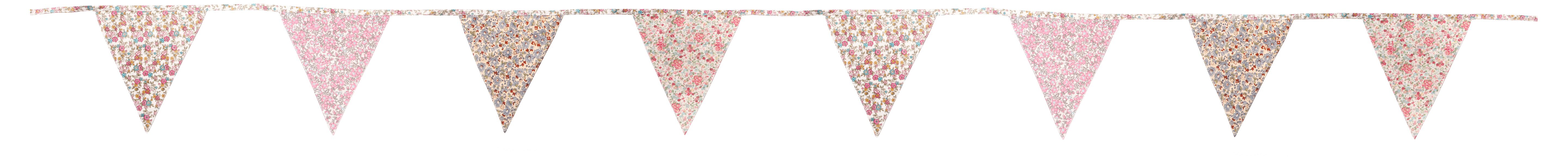 Denna vimpel med vintage blommönster har en total längd på 1,5 meter, varje flagga är 20×18 cm och har totalt 8 flaggor i olika tyger och mönster. Det är en väldigt söt dekoration som passar i de allra flesta rum. Den är gjord utav bomull och kan tvättas i 40C handtvätt. Färgerna i vimpeln går i rosa, blå, grön samt lite grått.