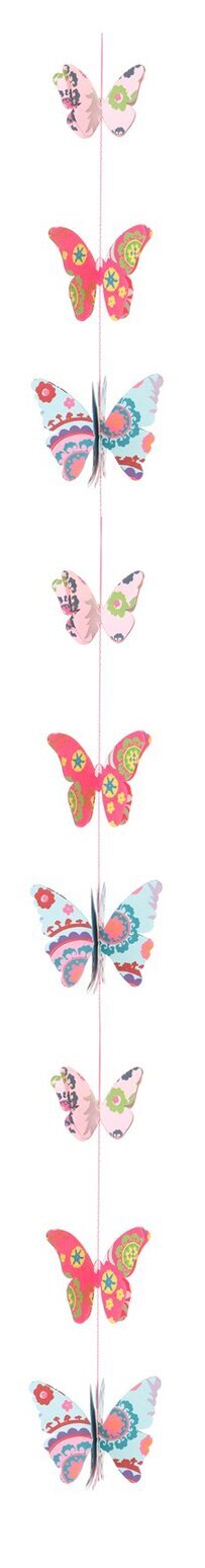 Bilden från Köpstaden.se visar en dekorativ produkt från varumärket Sass & Belle, under det passande namnet Dekoration Fjäril. Denna charmiga detaljerade dekoration består av en rad färgglada fjärilar, alla med unika mönster och färgkombinationer som ger liv och energi till inredningen. Dekorationen hänger vertikalt, vilket skapar en känsla av rörelse och lätthet.