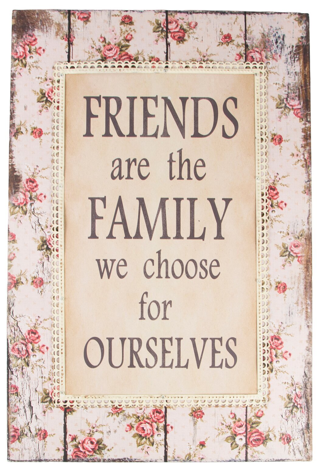 På bilden från Köpstaden.se ser vi en dekorativ tavla från varumärket Sass & Belle med budskapet "Friends Are The Family We Choose For Ourselves". Tavlan har en retroinspirerad design som passar perfekt för att skapa en hemtrevlig atmosfär.