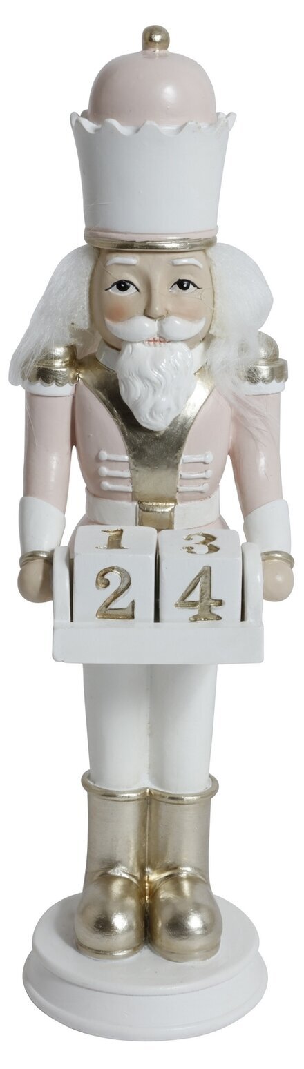 Nötknäppare som håller i en bricka med siffror för nedräkning till jul, finns i flera olika färger.
