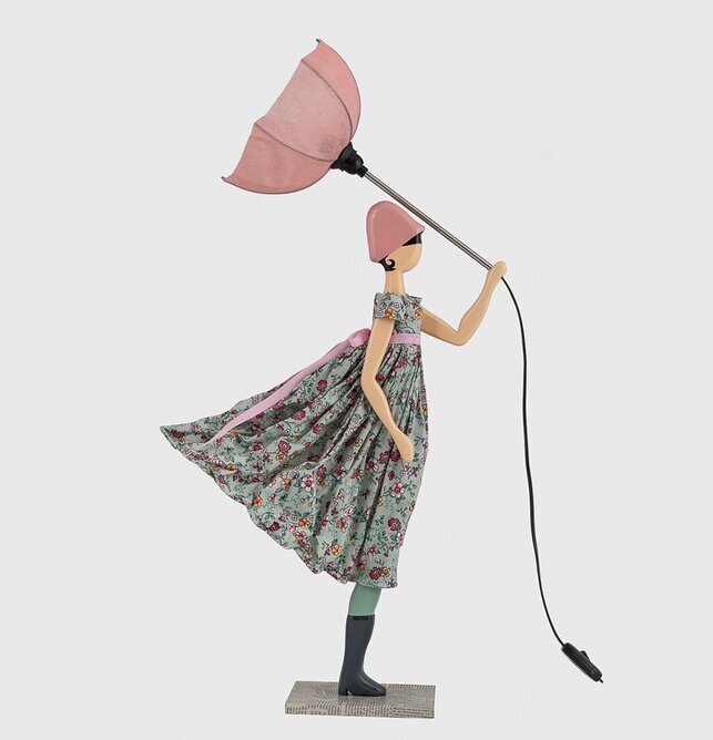 Fantastiskt fin bordslampa som väcker uppmärksamhet & drar blickarna till sig. Lampan som är tillverkad för hand finns i ett flertal olika färger, monteras enkelt på den medföljande brickan tillsammans med ett handtag som håller upp lampskärmen.