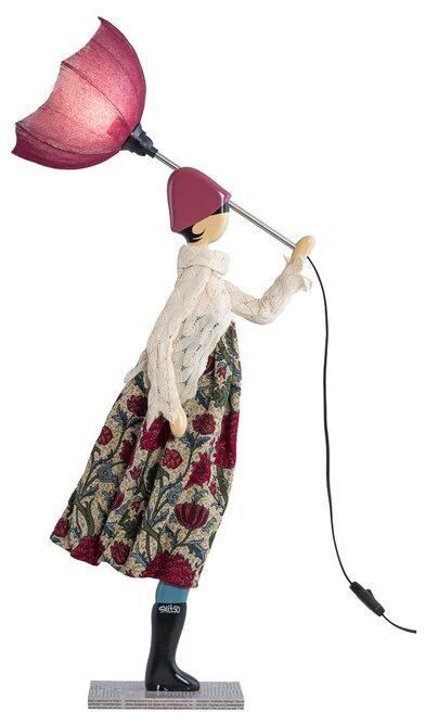 Fantastiskt fin bordslampa som väcker uppmärksamhet & drar blickarna till sig. Lampan som är tillverkad för hand finns i ett flertal olika färger, monteras enkelt på den medföljande brickan tillsammans med ett handtag som håller upp lampskärmen.