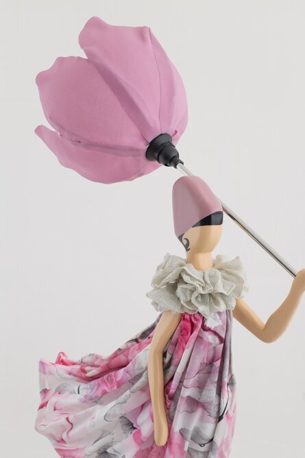 Fantastiskt fin bordslampa som väcker uppmärksamhet & drar blickarna till sig. Lampan som är tillverkad för hand finns i ett flertal olika färger och har en bricka som lampan monteras på samt ett handtag med lampskärm som blir ett paraply. Material: Trä samt textil. Lampan är CE-märkt, har svart sladd med strömbrytare, ljuskälla ingår ej, E14, LED Max 40 W. Endast för inomhusbruk.