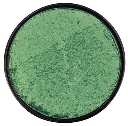På bilden från Köpstaden.se visas en detaljrik produkt med en tydlig inriktning mot ansiktsmålning och kreativt skapande. Det handlar om ansiktsfärg i nyansen metallic grön från varumärket Snazaroo. Färgen har en specifik iriserande kvalitet som fångar ljuset på ett unikt sätt, vilket kan ge en fascinerande effekt när den appliceras på huden.