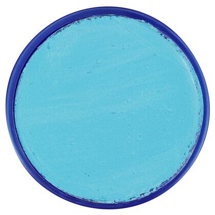 Färgen i sig är jämn och slät, vilket indikerar en krämig konsistens som troligen är lätt att applicera. Den turkosa tonen är intensiv och jämn över hela ytan, vilket gör att den verkar idealisk för både festliga evenemang och kreativa ansiktsmålningar.