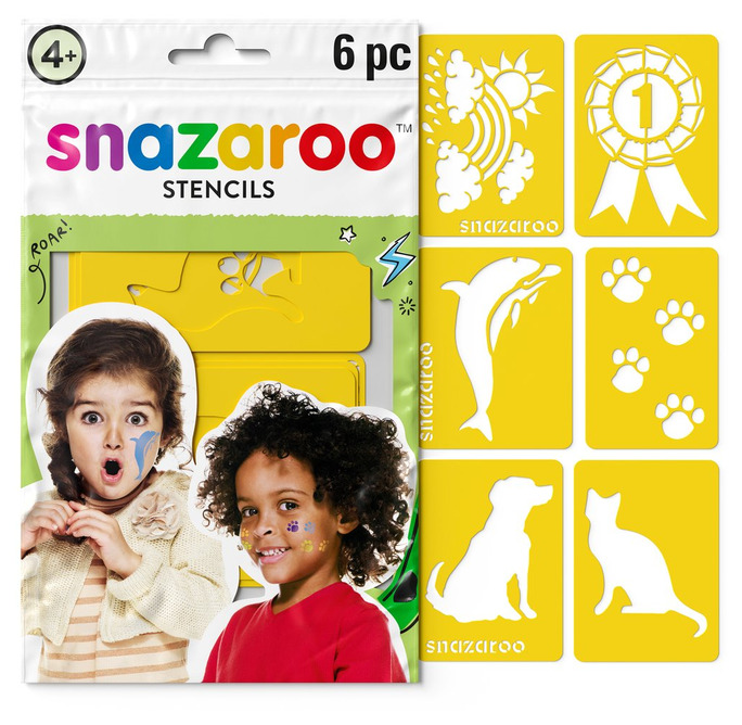 6 olika schabloner från Snazaroo, lätt att använda & säkra för barn. Självhäftande baksida håller schabloner på plats. Läs mer