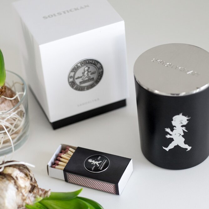 Doftljuset levereras i en exklusiv presentkartong och har doften Sandelträ.