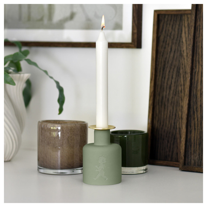 En elegant ljusstake i keramik som på ett harmoniskt sätt förenar form och funktion. Den medföljande ljusmanschetten i guld skyddar underlaget från stearin och ger samtidigt ett sofistikerat intryck. En tidlös inredningsdetalj som passar lika bra i vardagens lugn som till festdukningen.