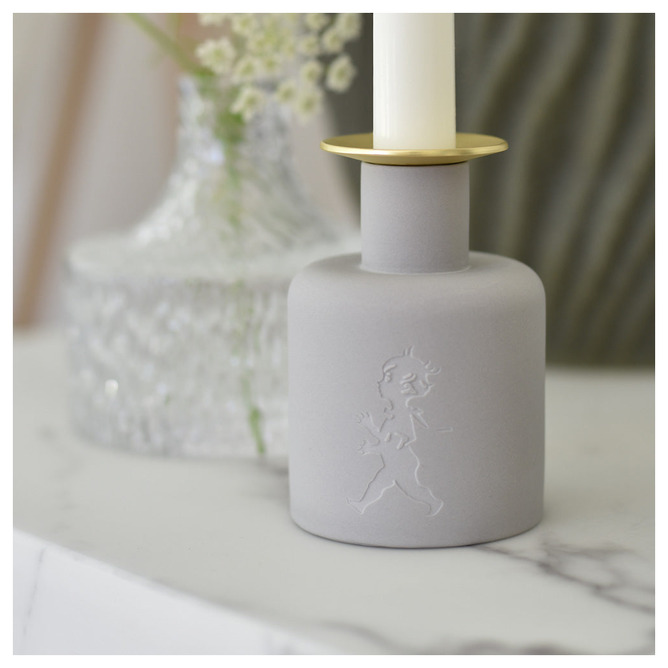 En elegant ljusstake i keramik som på ett harmoniskt sätt förenar form och funktion. Den medföljande ljusmanschetten i guld skyddar underlaget från stearin och ger samtidigt ett sofistikerat intryck. En tidlös inredningsdetalj som passar lika bra i vardagens lugn som till festdukningen.
