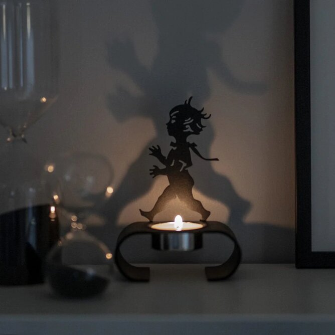 Skapa en inbjudande och stämningsfull atmosfär i ditt hem med denna vackra silhuettljusstake för värmeljus.