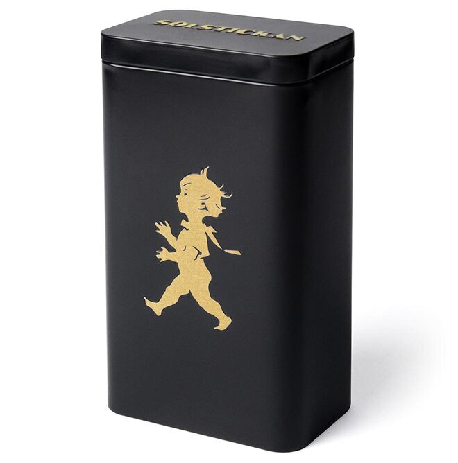 Plåtburk för kaffe från Solstickan Design med motiv av den klassiska Solstickepojken. Läs mer
