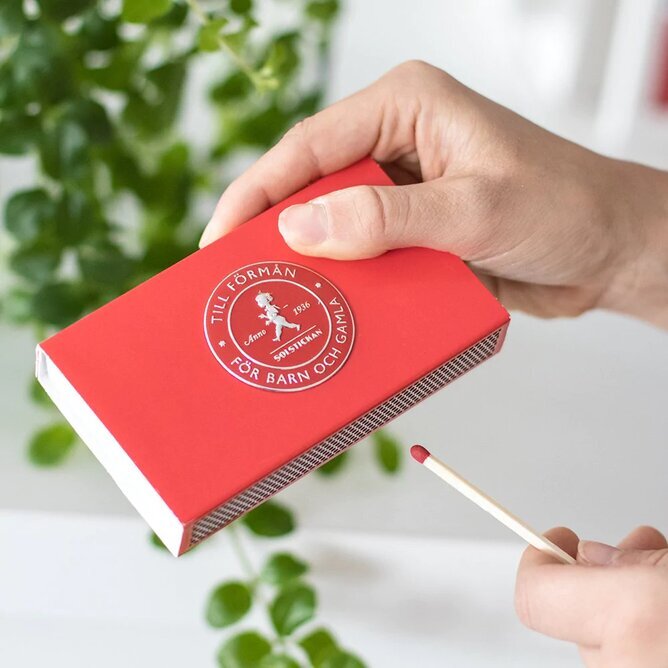 Tändsticksask med avbildning av den klassiska Solstickepojken, förpackningen innehåller 50 stickor. Läs mer