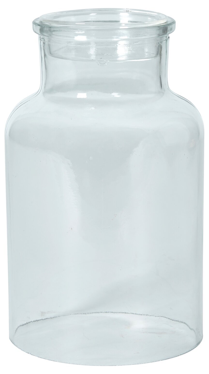Burken är cylindrisk och har en slät, jämn yta som ger intryck av en välpolerad yta. Glaset är helt genomskinligt, vilket gör att innehållet i burken enkelt kan ses och uppskattas. Den har en bred öppning, vilket gör det möjligt att enkelt placera dekorationer eller förvara diverse föremål i den. Den övre kanten är något utsvängd och ger en känsla av robusthet, samtidigt som det bidrar till ett stadigt grepp vid hantering.