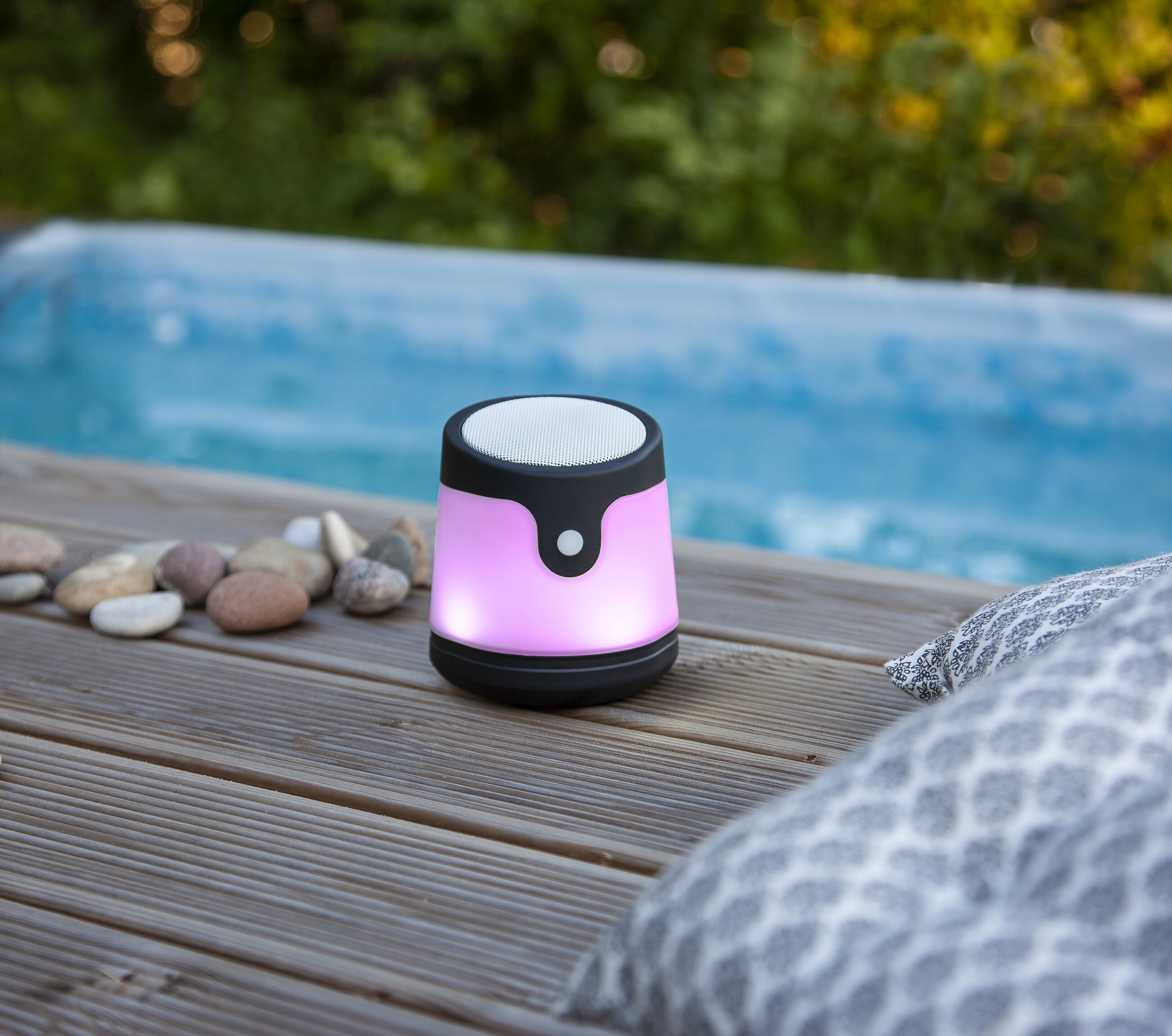 Högtalare RGB som kan anslutas via Bluetooth till smartphone & platta. Enkel att bära med till trädgården. Läs mer