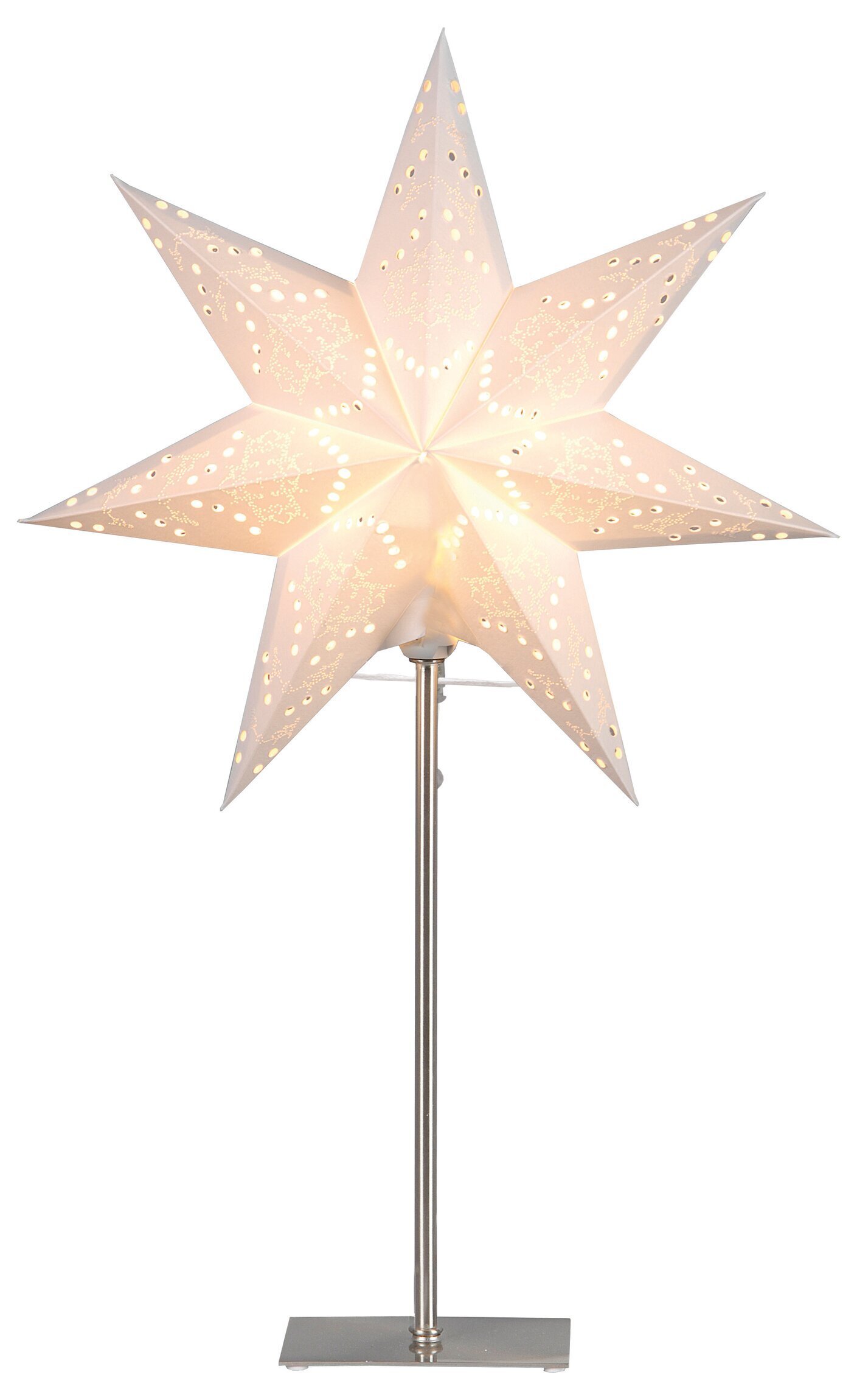 Vacker stjärna med mönster i en fin vit nyans med fot i silver. Finns i flera olika storlekar fina att matcha tillsammans.