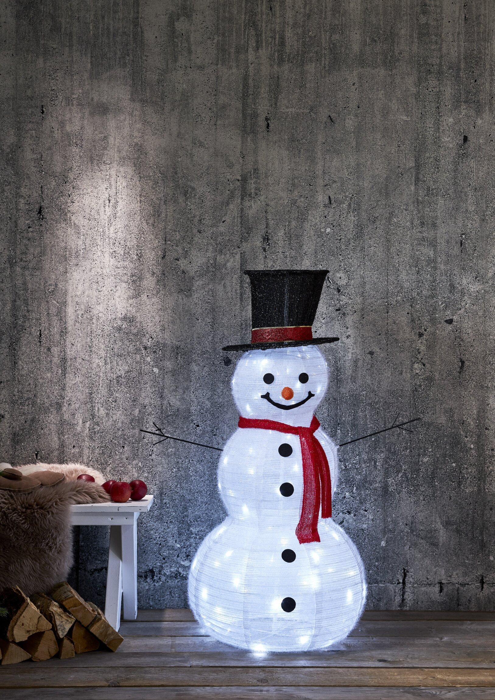 Snögubbe med hatt & halsduk som kan användas både inne- som utomhus, från Star Trading. Snögubben består av 90 stycken lampor som vackert lyser upp. Dekorationen som är tillverkad av tyg bör placeras skyddat från väder & vind för att bevara produktens skick.