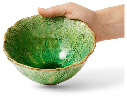 Vacker soppskål tillverkad av vit stengodslera, varje skål är handgjord & unik i mönster & utseende. Kan användas i ugn-, mikro- samt diskas i diskmaskin.