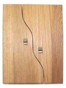 Nyckelskåpet kännetecknas av sin rektangulära form med en genomtänkt val av ekträ som grundmaterial. Ekens naturliga ådring ger skåpet ett autentiskt utseende, där olika nyanser av ljus och mörkare bruna toner kontrasterar på ett harmoniskt sätt. Denna variation i färg ger liv åt ytan och gör att träets unika karaktär verkligen framhävs.