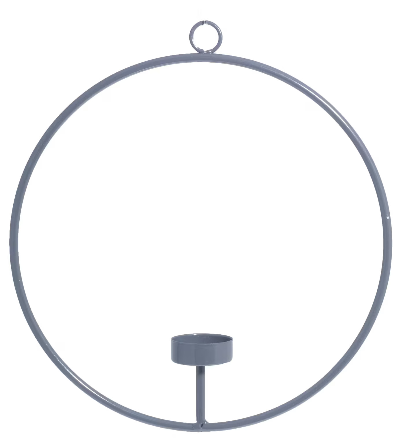 I mitten av cirkeln finns en horisontell stav som leder till en hållare tänkt för ett litet värmeljus eller dekoration. Hållaren är diskret och smälter fint in i helheten, vilket gör att fokus naturligt dras till den övergripande formen snarare än individuella detaljer.