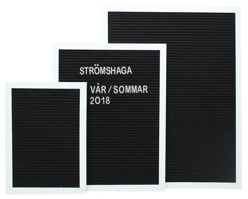 Bilden presenterar en trio bokstavstavlor som erbjuder en mångsidig anslagstavla-lösning för hem och kontor. Dessa tavlor är en del av Strömshagas produktlinje, tillgängliga hos Köpstaden.se, en butik som är känd för sitt breda sortiment. Denna specifika produkt, kallad Bokstavstavla Vit/Svart Stor, kommer i tre olika storlekar och visar en smakfull kontrast med sina svarta tavelytor inramade av vita kanter.