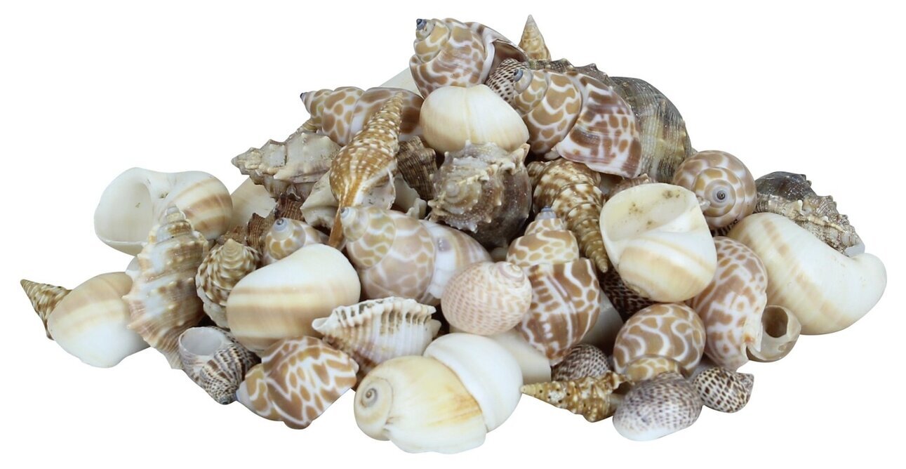 Bilden betonar också snäckornas mångfald, både i deras naturliga färgsättning och i deras unika former, vilket gör dem till en idealisk dekorativ detalj. De estetiska aspekterna av dessa snäckor fångar naturens skönhet och framhäver det konstnärliga i det enkla. Hela arrangemanget ger ett naturligt och harmoniskt intryck, med en känsla av lugn och tidlöshet, vilket gör det till ett tilltalande val för dem som söker en stilfull och naturlig inredningsdetalj.