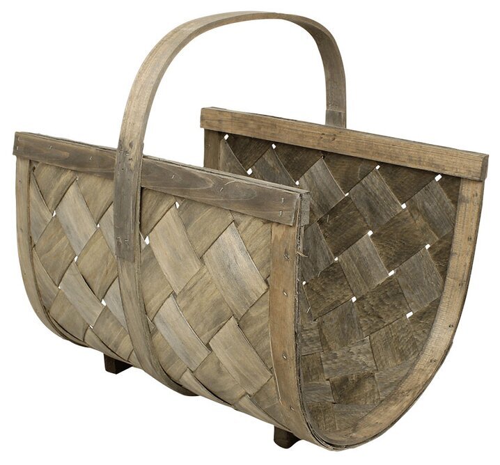 Flätad spånkorg med handtag i en fin grå färg. Kan användas till ved, tidningar, plädar eller kanske som en vacker blomsterkorg. Mått: 47 x 36 x 40 cm.