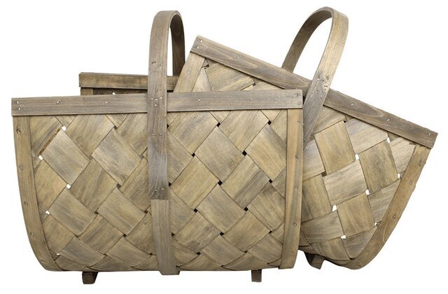 Flätad spånkorg med handtag i en fin grå färg. Kan användas till ved, tidningar, plädar eller kanske som en vacker blomsterkorg. Mått: 47 x 36 x 40 cm. Läs mer