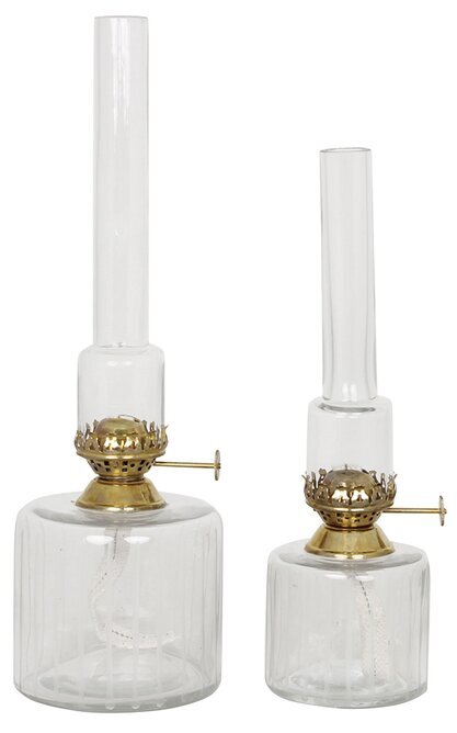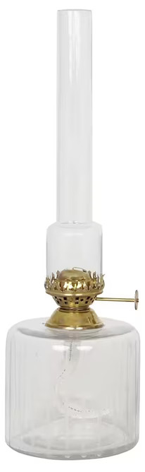 Fotogenlampa i rak modell, klarglas samt mässingsdetaljer.